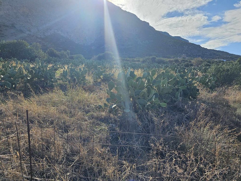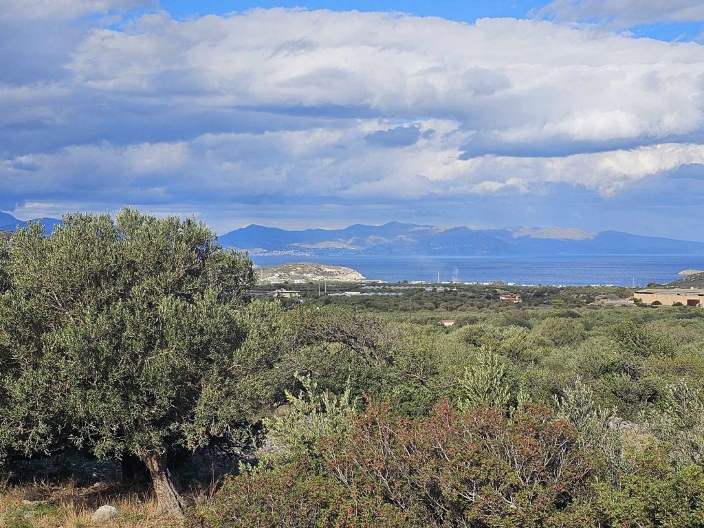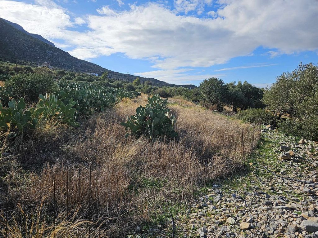 Beautiful and fairly large (6342 m2) building plot, nicely positioned in the southern Mirabello Bay area, only about 3 km from the see, between the coastal village of Pachia Ammos and the town of Ierapetra. It enjoys some views of the sea (Mirabello Bay), impressive views of the nearby gorge of Cha and the mountains as well as the surrounding countryside. It has the planning permission (allowance) for a house or houses of 120 m2 on one floor (ground floor), plus 120 m2 of basement. Plenty of s...
