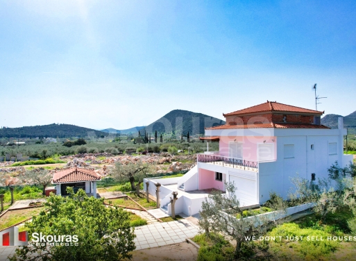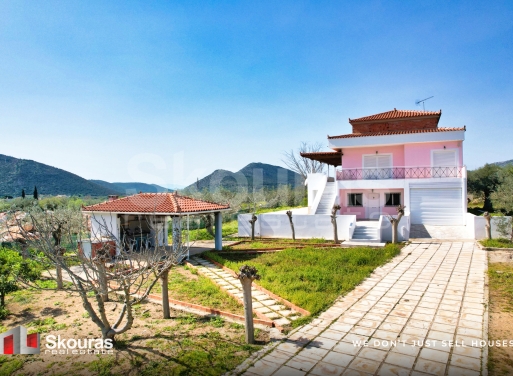 Among the olive groves, less than 1.5 kilometers from the picturesque settlement of Ermioni and the beautiful beaches of the area, an independent detached house with a total area of 289 sq.m. is available for sale within a fenced and tree-lined plot of 5,899 sq.m., offering privacy and tranquility. The house is located in a quiet location among olive groves, with an open horizon and views of the surrounding mountains. Access is extremely easy via an asphalt road. The house is developed on thre...
