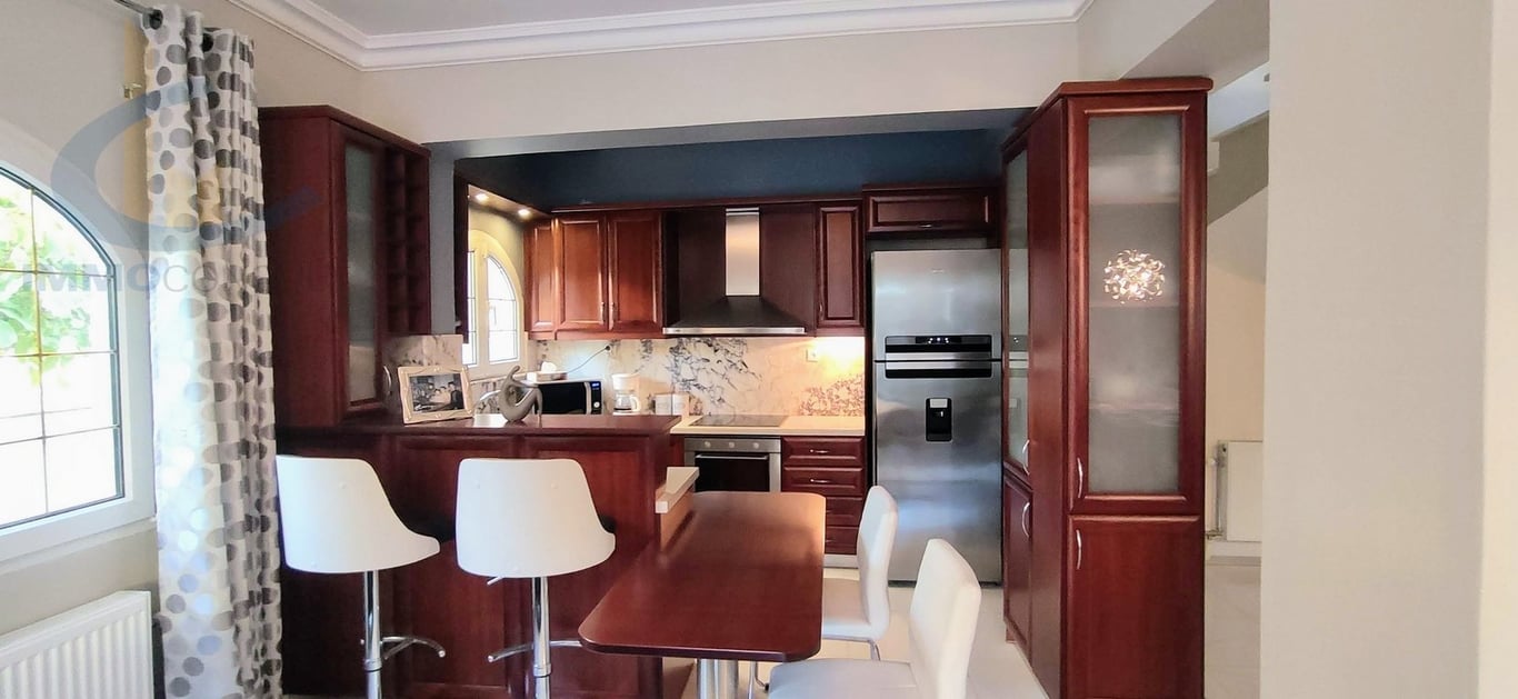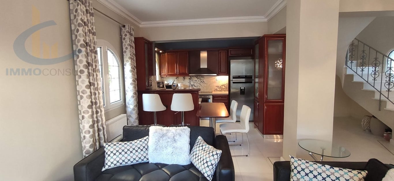Glyfada, Terpsithea, Detached house on 2 levels, 160 sq.m., on a plot of 260 sq.m., which has been rarely inhabited because it belongs to a Greek living abroad, is sold fully furnished, i.e. electrical appliances, furniture, kitchen equipment, sheets, etc. The year of construction is in 2016, with 4 bedrooms, 2 bathrooms, autonomous heating - oil, cooling air conditioning, solar, has a security door, alarm, intercom, internal staircase, double glazing, balconies in all rooms, garden, aluminum fr...