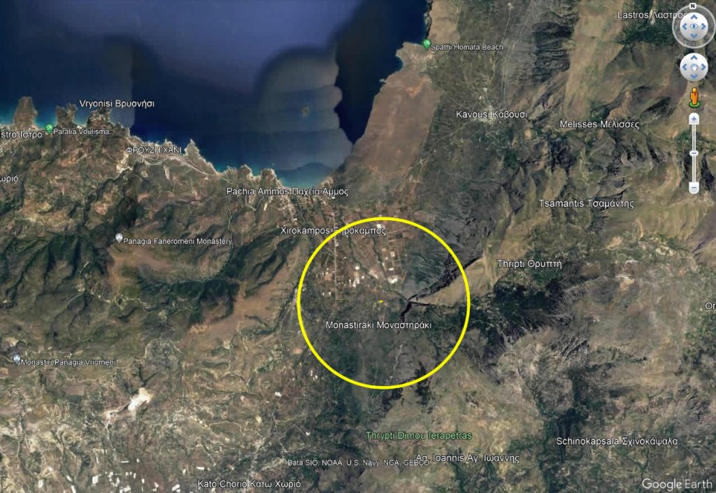 Building plot of 988 m2, nicely positioned in the southern Mirabello Bay area, only about 3 km from the see, between the coastal village of Pachia Ammos and the town of Ierapetra. It enjoys views of the sea (Mirabello Bay), impressive views of the nearby gorge of Cha and the mountains as well as the surrounding countryside. It has the planning permission (allowance) for a house or houses of 120 m2 on one floor (ground floor), plus 120 m2 of basement. Enough space would be left for swimming poo...