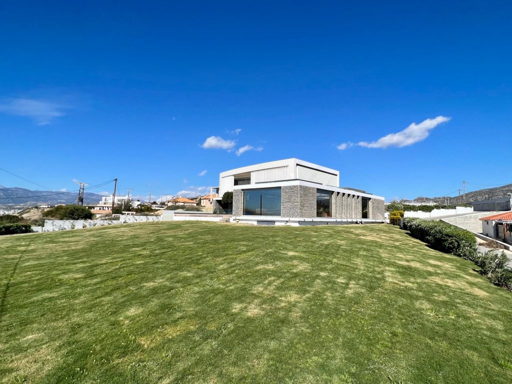 It is a luxurious villa, which has been built on a 3.000m2 plot of land about 3 km outside the town of Ierapetra on the road to Makrigialos. The plot is level with a slight inclination to the South offering wonderful and unobstructed view of the Libyan Sea, the town of Ierapetra and the island of Chrissi. The shore line is located at a distance of 85m while the beach is at 120m. The surrounding area of the property is fully landscaped with perimeter walls, gardens and lawns. The Villa is of ex...