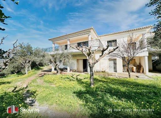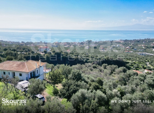 Exclusively available through our office, a detached house with a total area of 280 sq.m., built on a lush 4,700 sq.m. plot, in the Agriomata Vergas area, just a few minutes outside Kalamata. The location of the property is one of its main advantages, offering fantastic, unobstructed views of the entire Messinian Gulf and the city of Kalamata. The west-facing orientation creates a truly magical setting in the afternoons, with impressive sunsets and a unique sense of serenity. The main residence ...