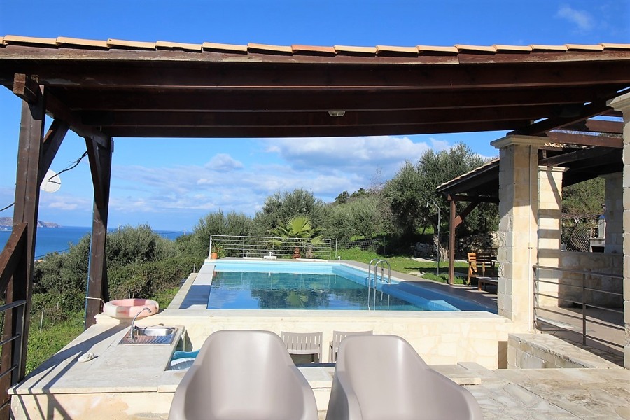 A four bedroom detached villa for sale in Kera, Chania with spectacular views overlooking the bay of Kera with its own private olive grove, heated infinity swimming pool and an advanced solar panel system for energy sufficiency. The villa is a spacious property of 200 sqm living space with an additional 80 sqm basement and has been built on a 4000sqms plot of land. It includes four double bedrooms all fitted with ensuite bathrooms,open plan kitchen with built-in electrical appliances,open fire ...