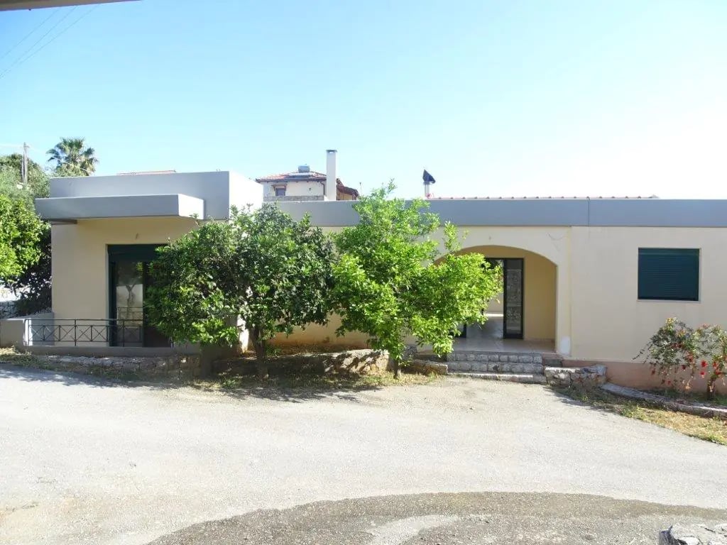 A newly built villa for sale in Kefalas on Crete This lovely house is in one level, As you come in there is a large, bright and comfortable space used as a combined living room, dining room, and beautiful in good standards kitchen. From there is access to a large terrace with magnificent views to the sea and the village. A short hallway takes you to three comfortable bedrooms and two bathrooms . Outside the approx. 400 meters sqm plot is planted with many flowering plants, trees ideal for r...