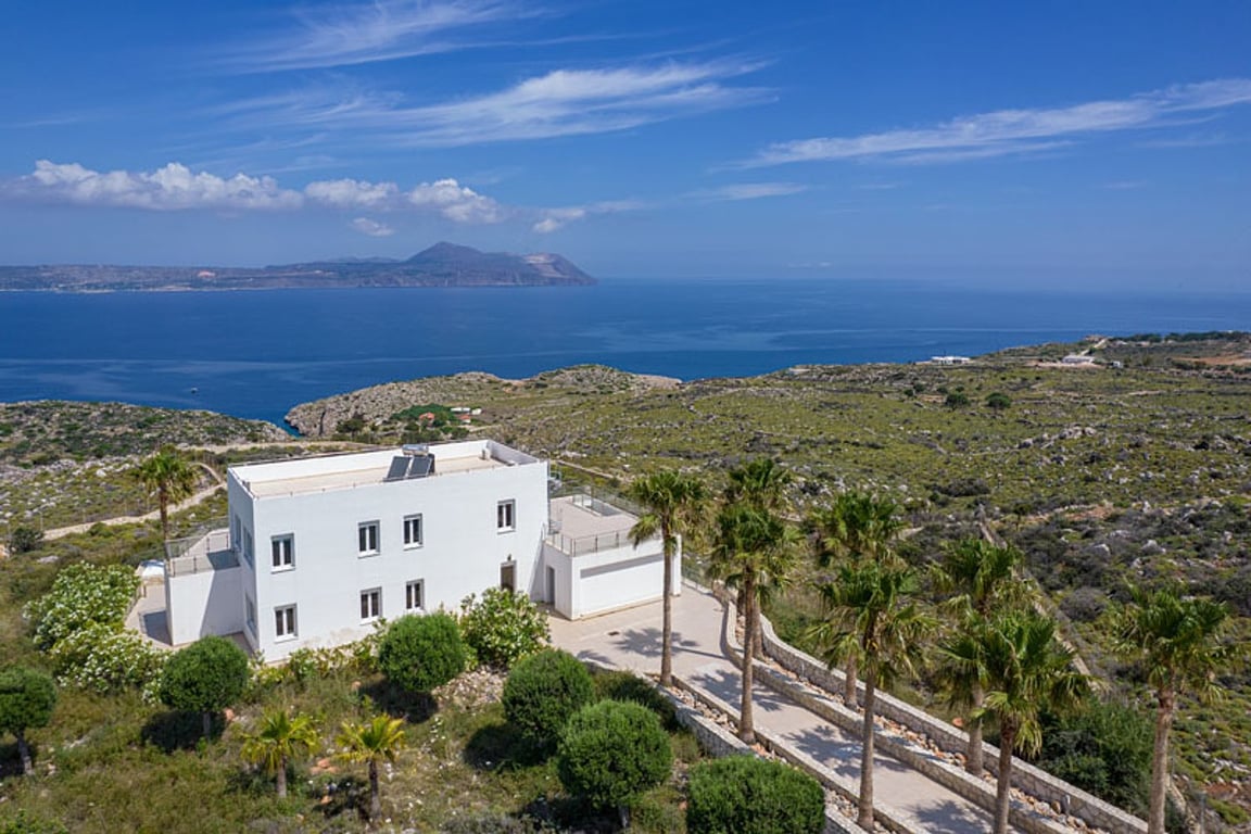 This luxurious villa for sale in Apokoronas, Chania, Crete, is located at the outskirts of the village of Kokkino Chorio. The villa is developed over 2 floors consisting of 3 bedrooms and 2 bathrooms, with a total living space of 235 sqms, sitting on a beautiful 4021 sqms private plot. The views from the property are excellent and unique, with direct panoramic sea views towards the beautiful bay of Souda and the open sea. Every room of the house enjoys amazing sea views. The design of the house ...