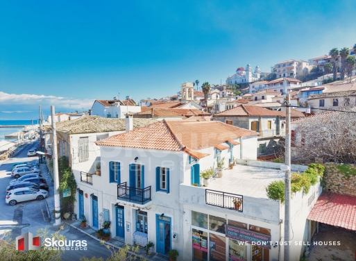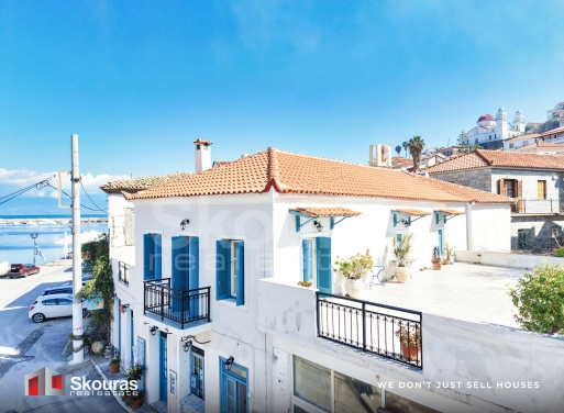 A unique detached property with a total surface of 305 sq.m. is available for sale in the port of Koroni, in one of the most privileged and iconic locations of the town, directly on the waterfront with unobstructed panoramic views of the picturesque harbor and the endless blue of the Ionian Sea. The main residence is located on the first floor with a surface of 160 sq.m. and offers a spacious and bright living environment, consisting of four bedrooms, two bathrooms, one WC, a large living room a...