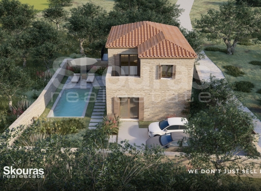 This under construction, modern two-story detached house of 170.4 sq m. nestles on a carefully landscaped plot of 380 sq m, combining modern luxury with comfort and functionality. The lower floor hosts three bedrooms and a bathroom, while the upper floor opens into an open space that unites the living room and kitchen, complemented by a balcony and WC, offering everyday comfort and elegance. The stunning pool area with sea views creates a private paradise, where the serenity and beauty of Messin...