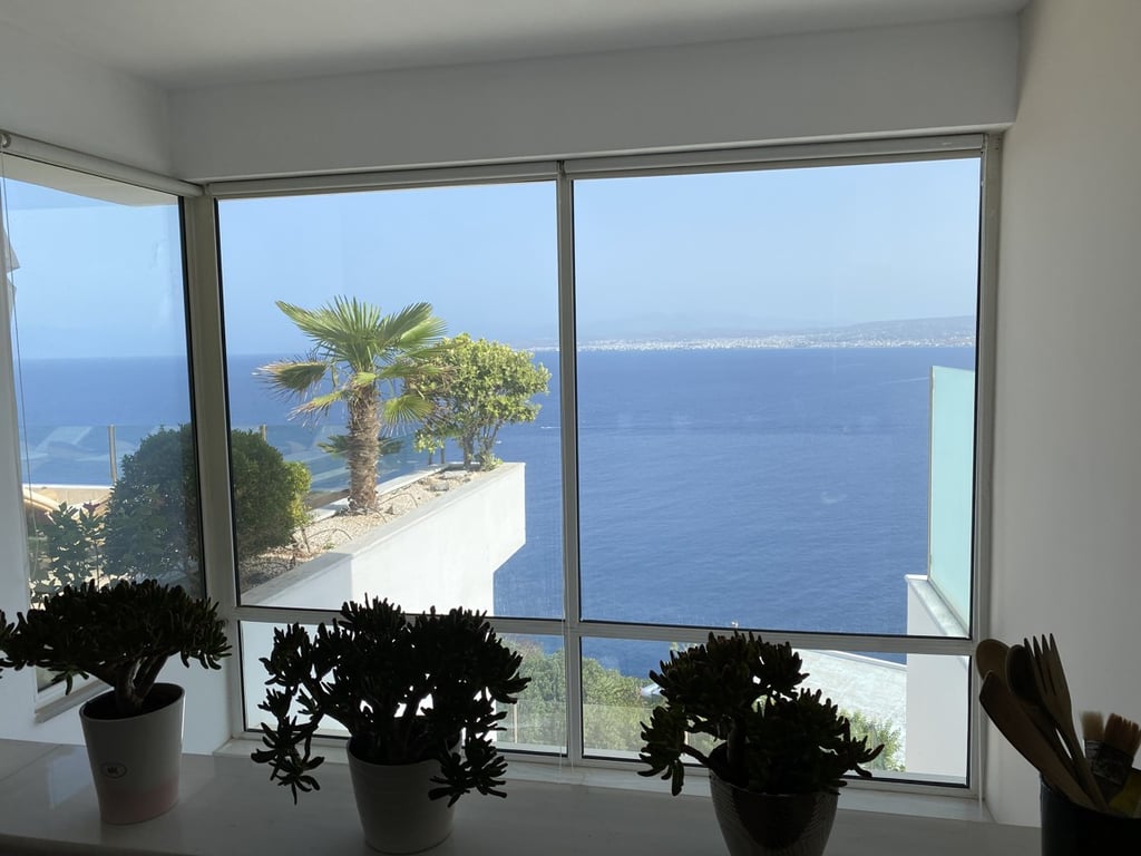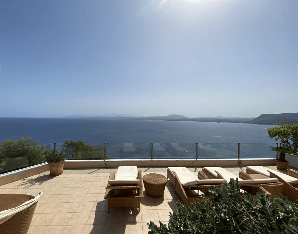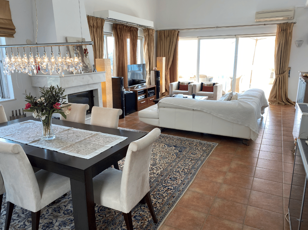 A four bedroom villa for sale in Lygaria,Heraklion built on a hillside with unobstructed spectacular views of the sea and the skyline. The house is part of a gated community and is 12 km away from Heraklion city centre. The house configuration consists of a spacious living-dining area with an open plan kitchen and access to the terrace and swimming pool, 3 bedrooms with two bathrooms and two large multifunctional rooms for an office, storage space and a fitness area. All bedrooms are facing the...