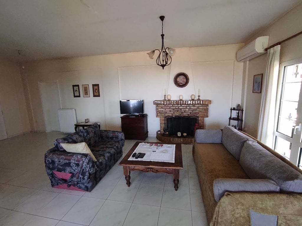 The house enjoys unobstructed vistas of the Patraic Gulf and the surrounding countryside. It offers privacy, yet it is closely located to the bustling city of Patras, and the Rio-Antirio bridge, and thus offers easy road access to all of Peloponesse and the southern part of central Greece.Developed over two floors and 126 sqm, there is a spacious living-dining room with a fireplace, open-plan kitchen, two bedrooms, one bathroom, and one WC. It is furnished and includes all kitchen and bathroom f...