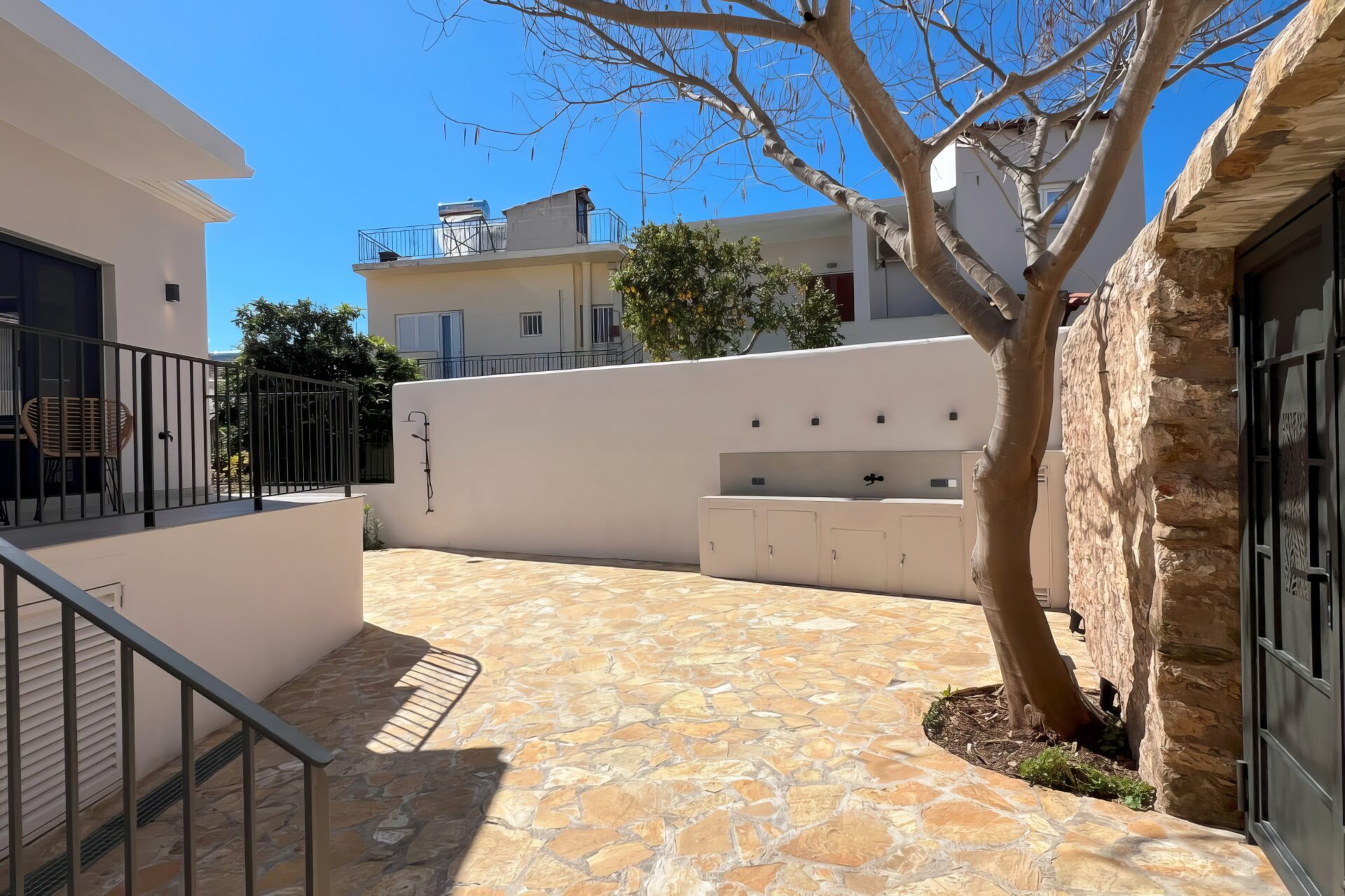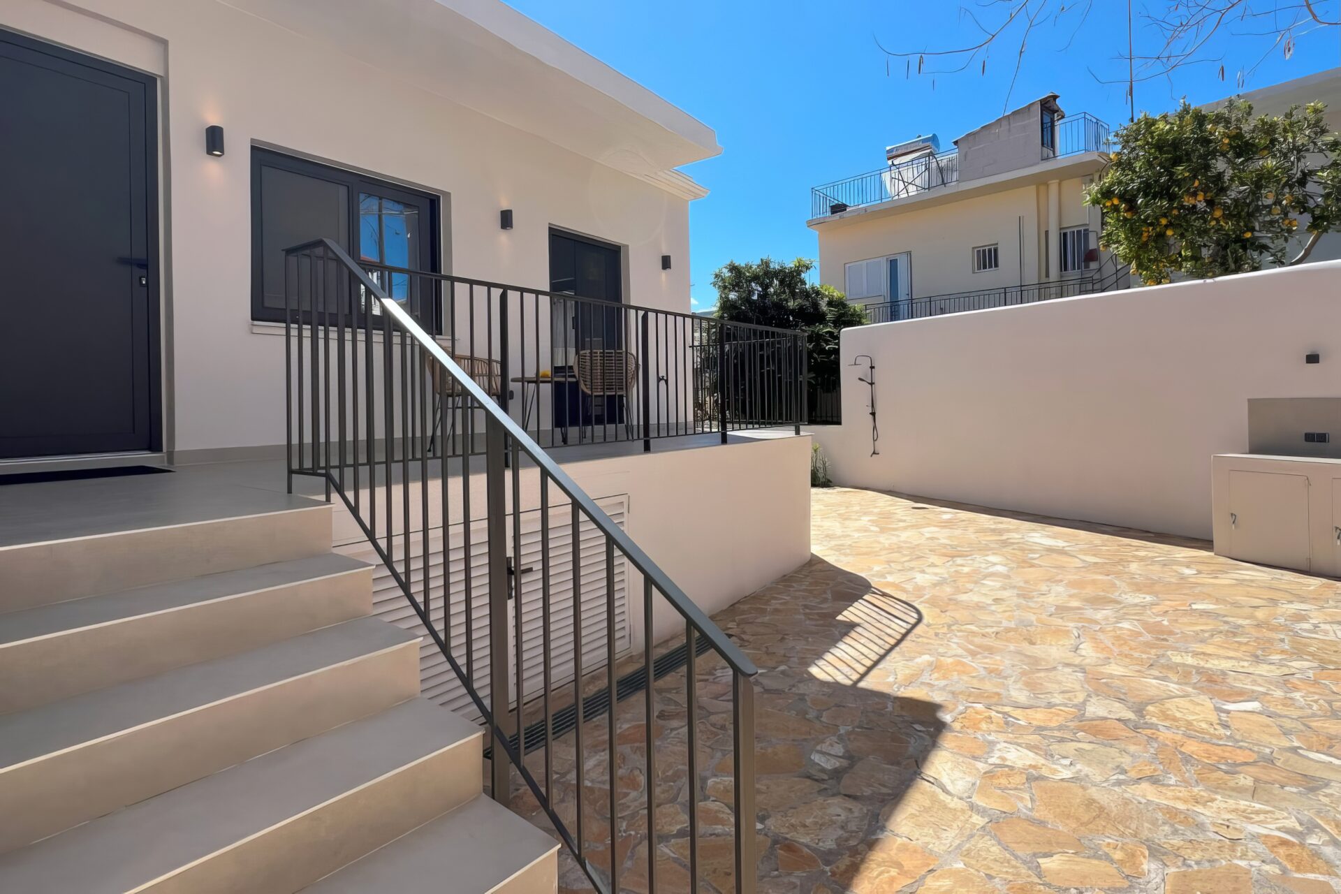In the heart of Methoni, this beautifully restored stone-built cottage offers a blend of traditional charm and modern comfort. Set on a 170 sqm plot, the total living space of 131 sqm is thoughtfully divided over two levels. The upper floor (79 sqm) features two bright bedrooms, a sleek modern kitchen, and a stylish bathroom. Wooden ceilings and a mix of wooden and tiled floors enhance the space, while a balcony overlooks the peaceful, enclosed yard.The lower level is an independent 52 sqm stud...