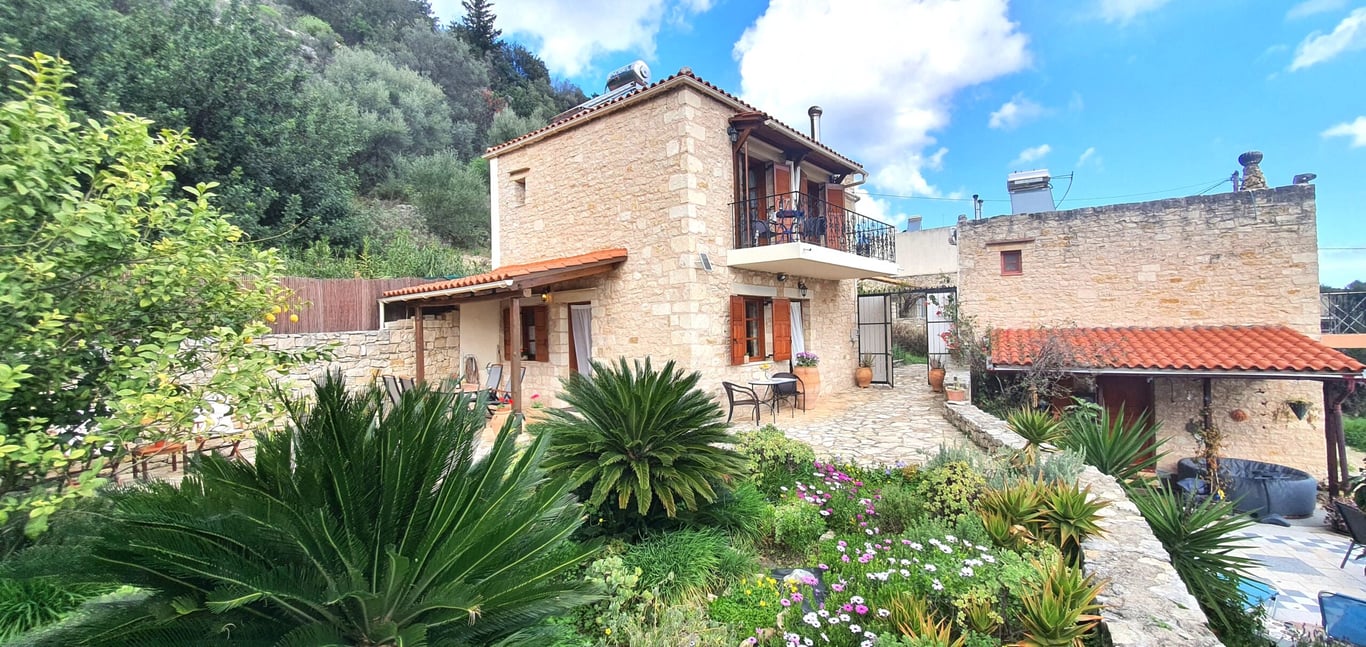 House for sale in Paidochori in Apokoronas on Crete. This detached villa is traditionally built ,beautifully finished and is constructed entirely of stone. The property is spread over two levels. It is offering an open-plan living, dining, kitchen area on the ground floor. The upper floor consists of two generous sized bedrooms, leading out to a large sun-filled balcony. There is a spacious bathroom with a bathtub and shower. The house has stunning views of the green Cretan landscapes tha...