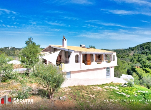 On a hillside, amidst greenery and with panoramic views of the natural landscape and the sea, an independent detached house with a total area of 126.53 sq m is available for sale within a fenced plot of 2,161.25 sq m, in an extremely quiet neighborhood characterized by sparse construction and elegant country houses. The house was completely renovated in 2025, with the replacement of all electrical and plumbing installations, a new roof, as well as a new kitchen and bathrooms. It is developed...