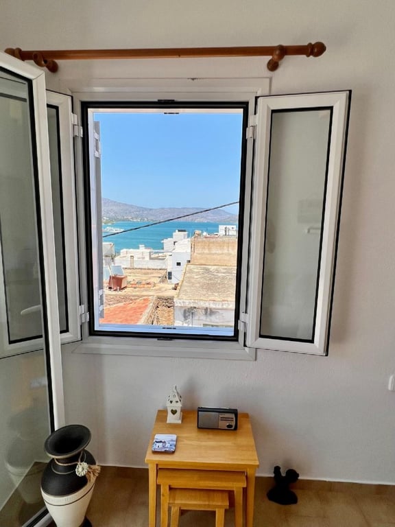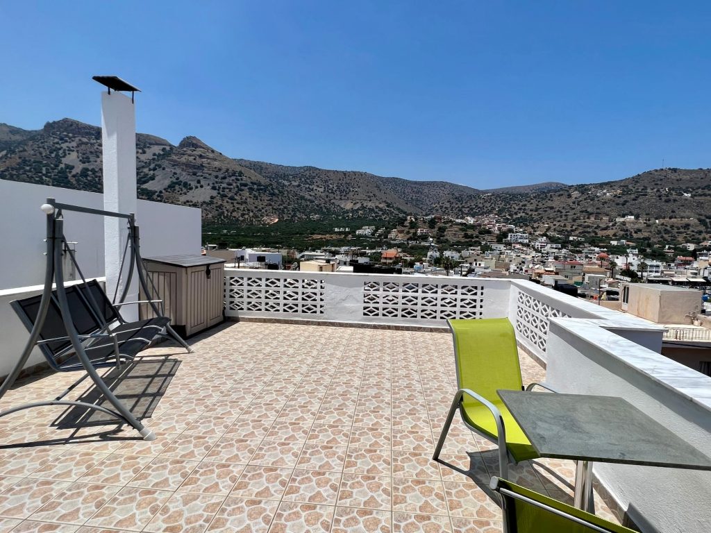 The comfortable 1 bedroom apartment is located in the center of the cosmopolitan town of Elounda, with the lively harbor and all the comforts of the area which are in walking distance. The apartment of 57 m2 is located on the top floor of a two storey building, it has a private entrance via an external staircase and a large veranda at the front. The flat consists of a convenient kitchen with a mountain view window and a dining area, a separate living room, which can also be used as a second be...