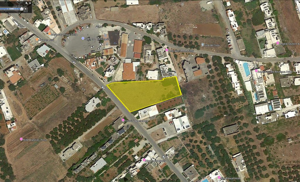 Building land of 2420 m2, nicely positioned inside the urban planning zone of the popular coastal tourist resort of Sissi, in the Municipality of Agios Nikolaos, Crete. It has the planning permission (allowance) for individual houses of up to 800 m2, built on one or two floors, plus basement. Enough space would be left to make swimming pool(s), open or covered terraces, pergolas, parking space, garden, etc. It is also possible to get a tourist development license for this land which allows the...