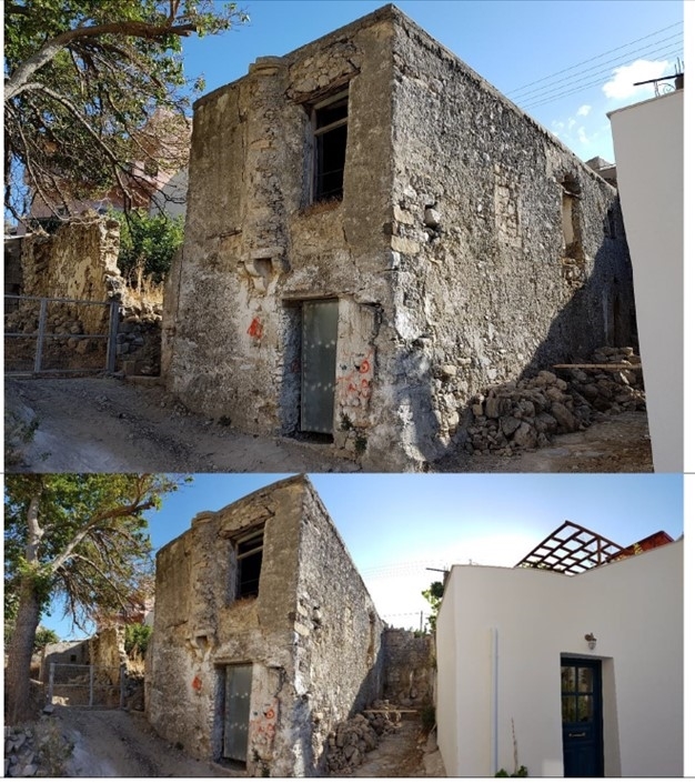 The property consists of two old stone houses within a large courtyard surrounded by an original stone wall. Additionally, there is a plot of 242 sq.m directly next to the renovation which is included in the sale making the total area of the property approximately 600 sq.m. One of the stone properties is a tower house that retains elements of Venetian and Ottoman architecture. The semi-circular chimney protruding from the north side, arched doorways, stone-framed windows, and two wine presses sh...
