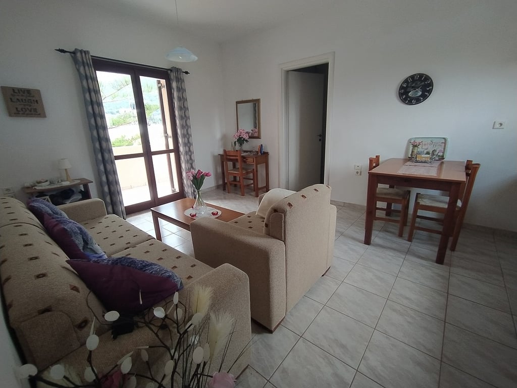 This 2-bedroom apartment for sale in Apokoronas Chania is located in the village of Stylos, in a quiet area with amazing country side views. It is 41sqms, set on the 2nd floor of an apartment building, which consists of 15 apartments.This apartment features 2 bedrooms, one bathroom, an open plan kitchen/dining/living area and one covered balcony. The living area has access to the balcony, overlooking a valley and the mountains. Private parking space is also included. Stylos is one of the greenes...