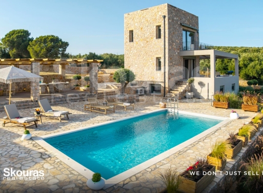 An exceptional, newly built luxury stone villa is for sale in Tragana, Messinia, in a privileged location that combines absolute tranquility with unobstructed views of the endless blue. With a southeast orientation ensuring abundant natural light throughout the day, the property extends over 140 sq.m. within a private plot of 750 sq.m., offering a unique blend of elegance, comfort, and understated luxury. Tragana is now one of the most up-and-coming areas in Messinia, with strong investment act...