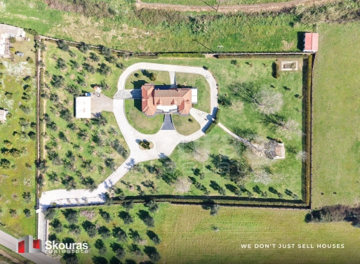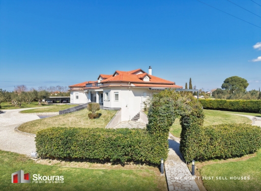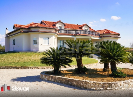 In the beautiful and up-and-coming area of Vartholomio, an impressive detached house in a villa style is available for sale, combining comfort, privacy, and high aesthetics within a lush green environment. The residence has a total surface area of 272 sq.m. and is situated on an exceptional 10,000 sq.m. plot, offering a rare combination of space, tranquility, and natural beauty. On the ground floor of the residence, there is a tasteful and particularly welcoming living area, where the large livi...