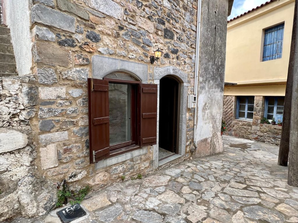 A renovated Cretan old house situated within the traditional village of Vrachasi. The 3-storey stone house of 75 m2 is accessed by a quiet village lane, it has traditional paved floors and wooden ceiling. The ground floor comprises an open plan living room/dining area and a kitchen. An internal iron staircase leads up to the 1st floor, where there is a double bedroom with window and a bathroom with shower, sink, toilet and water heater. On the 2nd floor there is the second bedroom, with access ...