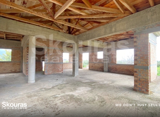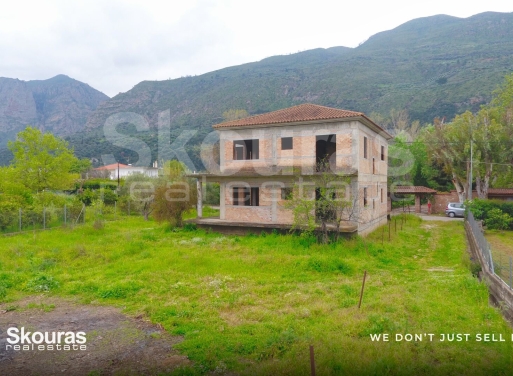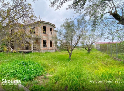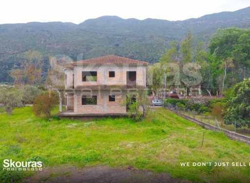 In the lush and highly privileged area of Elaionas Diakoptou, an unfinished detached house with a total area of 225 sq.m. is available for sale, set on a 950 sq.m. plot, in an environment that harmoniously combines mountain and sea. The property represents a unique opportunity for customization, as it is in an unfinished condition, allowing the new owner to complete it according to their personal vision and aesthetic preferences. The spacious interiors and generous plot offer unlimited possibil...