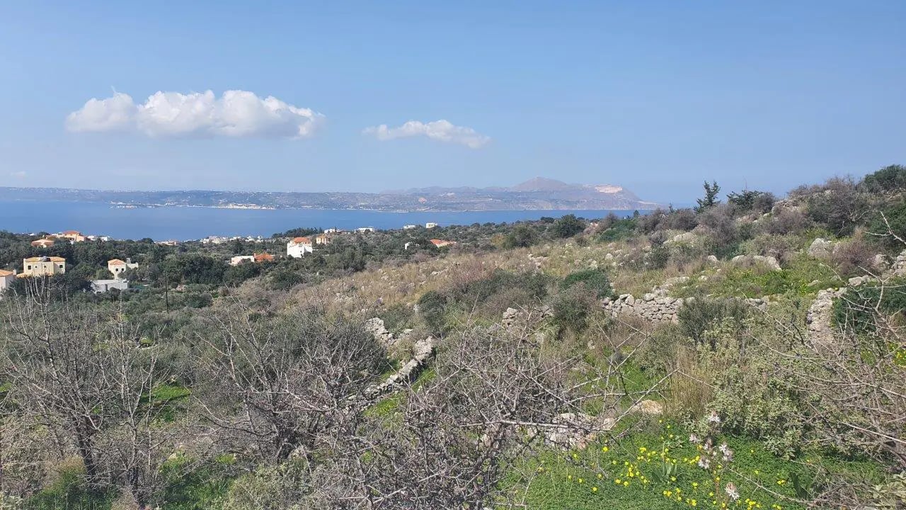 Land for sale on Kabia This is a lovely plot in the green area of Kampia north west Crete. The plot is 5838 sqm and you can build 238 sqm. It is close to Plaka, Almirida and Kalives. This super plot benefits from its elevated position on a cliff. This means that the gentle slope aids building to ensure unspoiled views. Moreover whoever builds here with have the sun all around and magnificent sunsets to see. The views to the sea look over to Souda Bay which means you can watch the boats and...