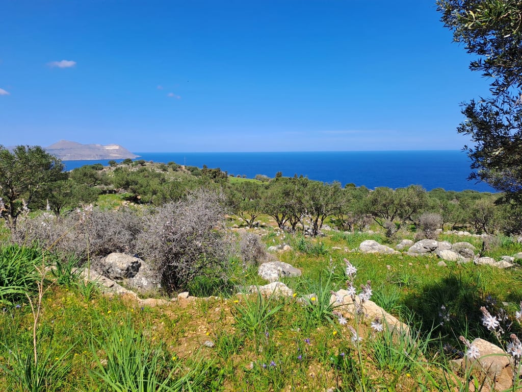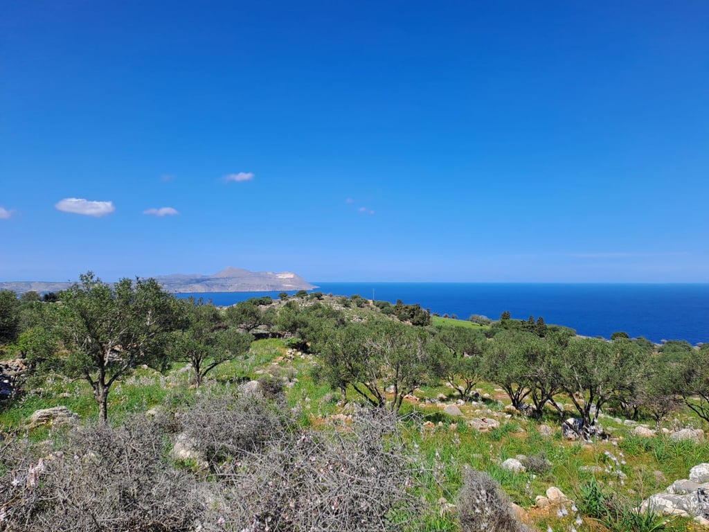 On the outskirts of Kokkino Chorio, the elevated position of this beautiful plot affords incredible mountain and sea views. With many olive trees and natural vegetation, and surrounded by olive groves and fields you have a rural feeling only a 15 minute drive away from Almyrida Beach.The plot comes with existing permits for a145mtr main villa with 30mtr pool plus a separate 50mtr guest house, you can build immediately without the frustrating wait for the application process!As plots and location...