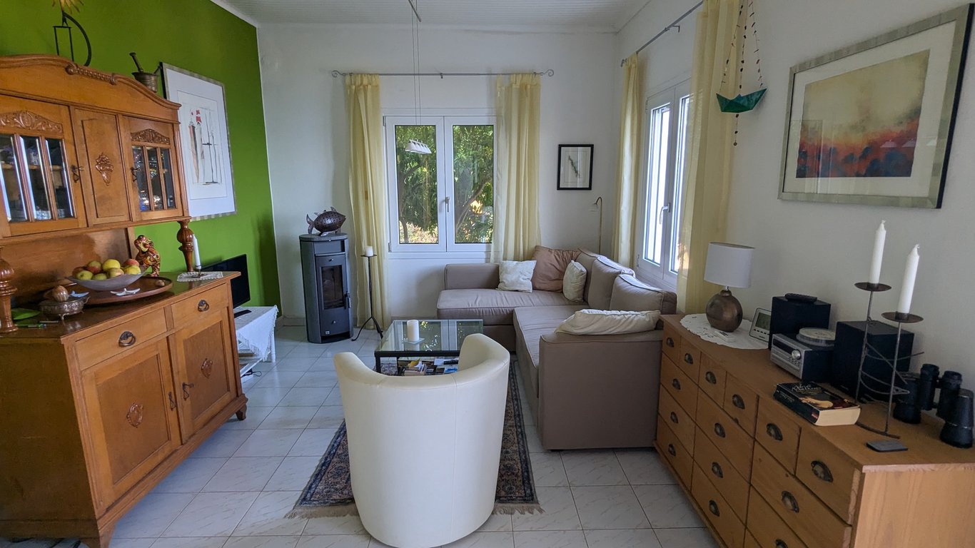 Located near the peaceful village of Agios Konstantinos, on the lush northern side of Samos, this charming single-level home combines traditional island character with modern upgrades. Set among greenery and sea views, it offers a tranquil retreat just minutes from the sea and village amenities.The house has a total area of approximately 75 sqm and includes two bedrooms, one bathroom, a comfortable living room, and a separate kitchen. Both the living room and the kitchen have a designated firepl...