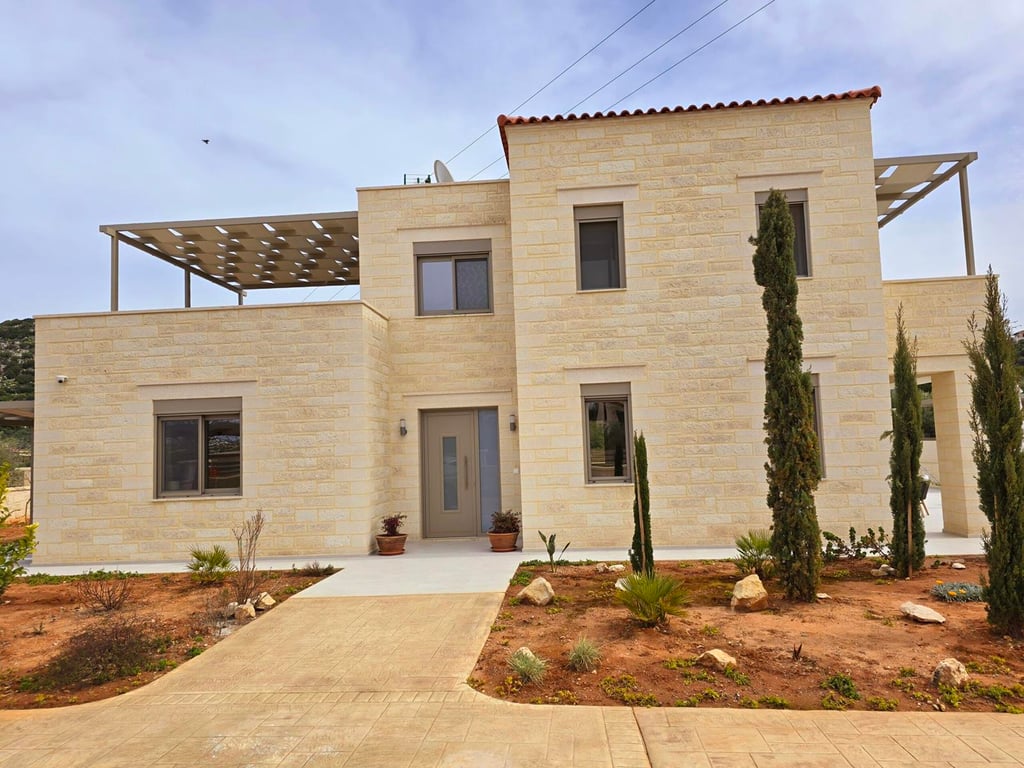 New Stone Villa in AlmyridaPrestigiously located just 300 meters from the sandy shores and overlooking Almyrida Bay, this stone villa spans 175.33 m2 on a plot of 980.07 m2. This elegant villa features convenient interiors, including 3 bedrooms and 3 bathrooms, and is set within a large fenced and landscaped plot.The ground floor, covering 105.56 m2, boasts a spacious open-plan living and dining area, a separate kitchen with fitted wooden cabinets, and all necessary electrical appliances. This l...