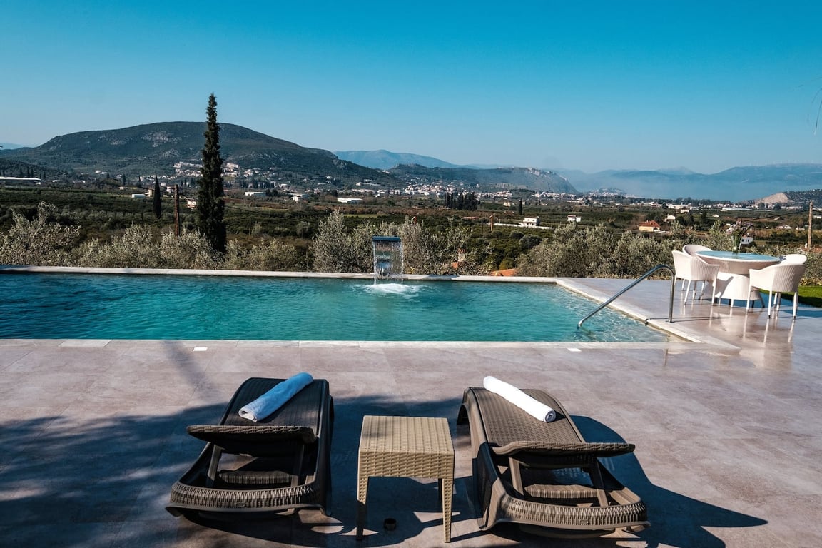 The Meraki villa, with the outstanding interior design, has 6 bedrooms, a private pool, and is located under a 10-minute drive from picturesque Nafplio! The villa On a plot of 4,300 sqm, the villa itself is 300 sqm with multiple areas for leisure. On the ground floor, there is a spacious open-plan luxury living room with a large fireplace and dining table. The kitchen is in a separate room, equipped with top-notch technology and all the electrical appliances a modern kitchen needs. Furthermore, ...