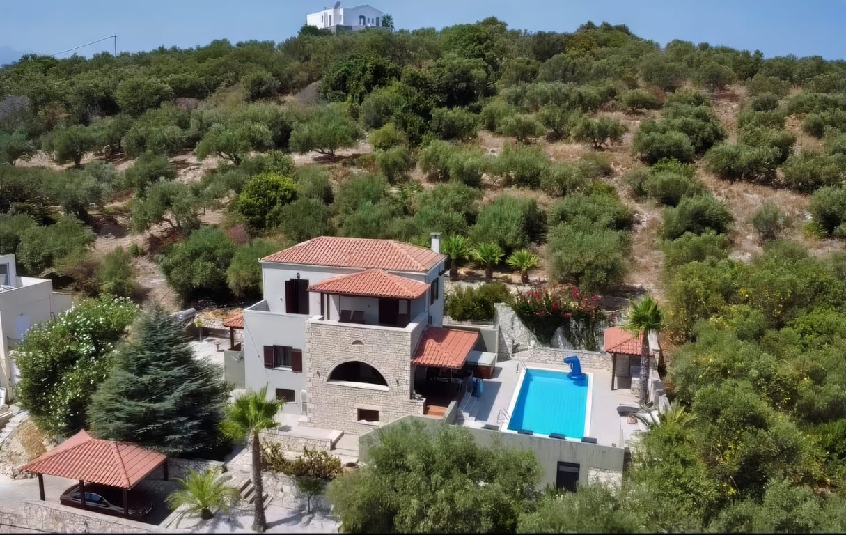 Located on Crete’s northwest coast, this 185 sqm villa blends comfort and elegance in a serene setting. Set on a 828 sqm plot, the property offers sea, mountain, and countryside views, making it an idyllic retreat. The 60 sqm ground floor, welcomes you with an open-plan living and dining area, enhanced by a cozy fireplace, perfect for gathering. The first floor, which covers 48 sqm, reveals two more bedrooms, with one offering panoramic sea views and the other showcasing a picturesque vista of t...