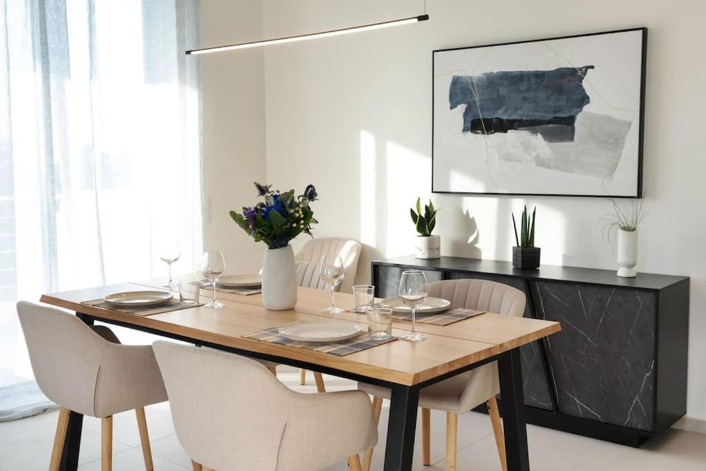 For sale a semi-detached fully furnished villa of 140 m2 built on a plot of about 2100 m2. Villa was completed in summer 2022. The house consists of two levels plus basement. It offers 3 double bedrooms and 2 bathrooms.The layout is as follows:Elevated ground floorAt this level there is a very spacious living room with a dining area, partly separate modern kitchen with many cupboards and a balcony. At this floor at the back there is the first bedroom with a balcony, bathroom with a bathtub and l...