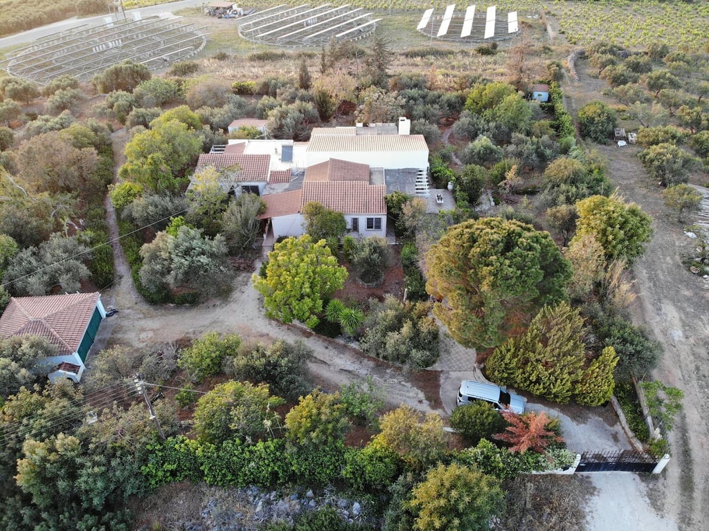 For sale a detached house of 260 m2 built on a fully fenced plot of 4066 m2 in 1989. The property is located in the quiet area of Chorafakia village on the Akrotiri Peninsula in Chania prefecture.The house is surrounded by beautifully landscaped garden with many trees, plants, herbs and flowers. It offers countryside and mountains views.The house consists of a fitted kitchen, a spacious living room with a fireplace, dining area, 4 double bedrooms and 3 bathrooms.It features central oil heating w...