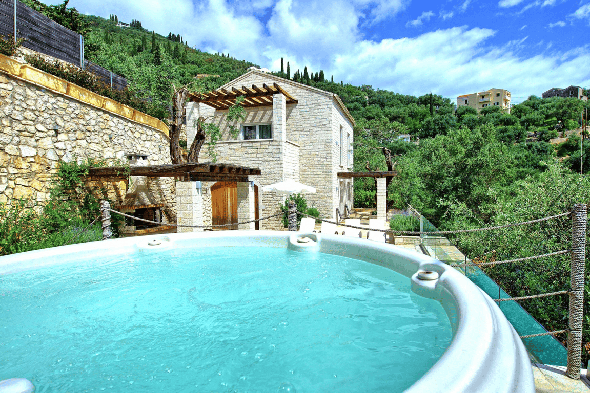 This 2-bedroom villa is set on a quiet hillside in Agni Bay, within walking distance of the bay and its seaside tavernas. The property sits on private grounds with paved paths, flower beds, and a small lawn. The outdoor area includes a 7x3m heated swimming pool, hot tub, and a built-in BBQ with a covered dining area, offering easy spaces for relaxing and entertaining. The villa is 120 sqm over two levels, with the upper floor featuring a kitchen and dining area, living room opening onto the pool...