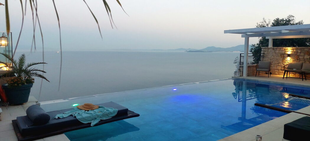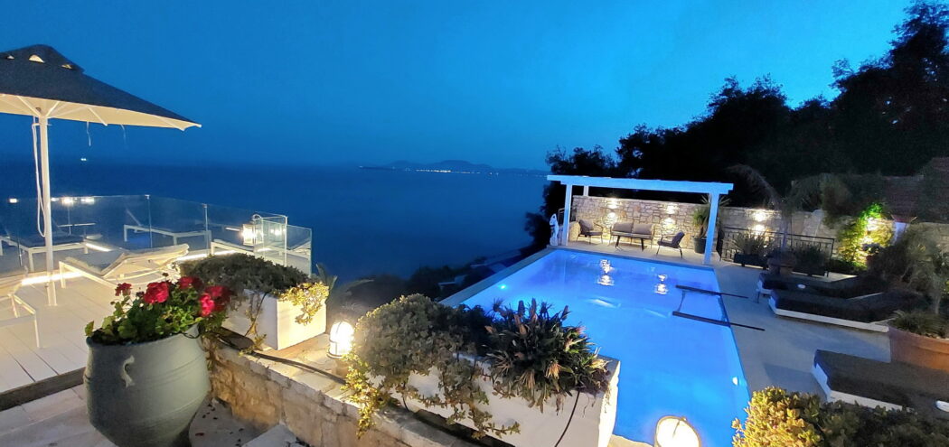 Situated on a hillside above Agni Bay, this villa enjoys uninterrupted sea views stretching toward Corfu Town and the mainland. Offering complete privacy, it's less than 10 minutes from Agni and Kalami bays known for their pebbled beaches, crystal clear waters, and beachfront dining.Set on a 1,577 sqm south-facing plot, the outdoor space includes a lawn, multiple terraces, BBQ area, and a 5m x 11m infinity pool with an elevated sun deck. Surrounded by mature landscaping, the setting maximises bo...