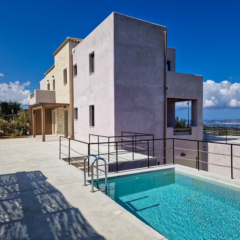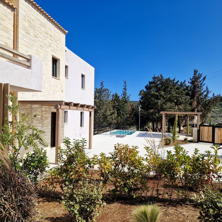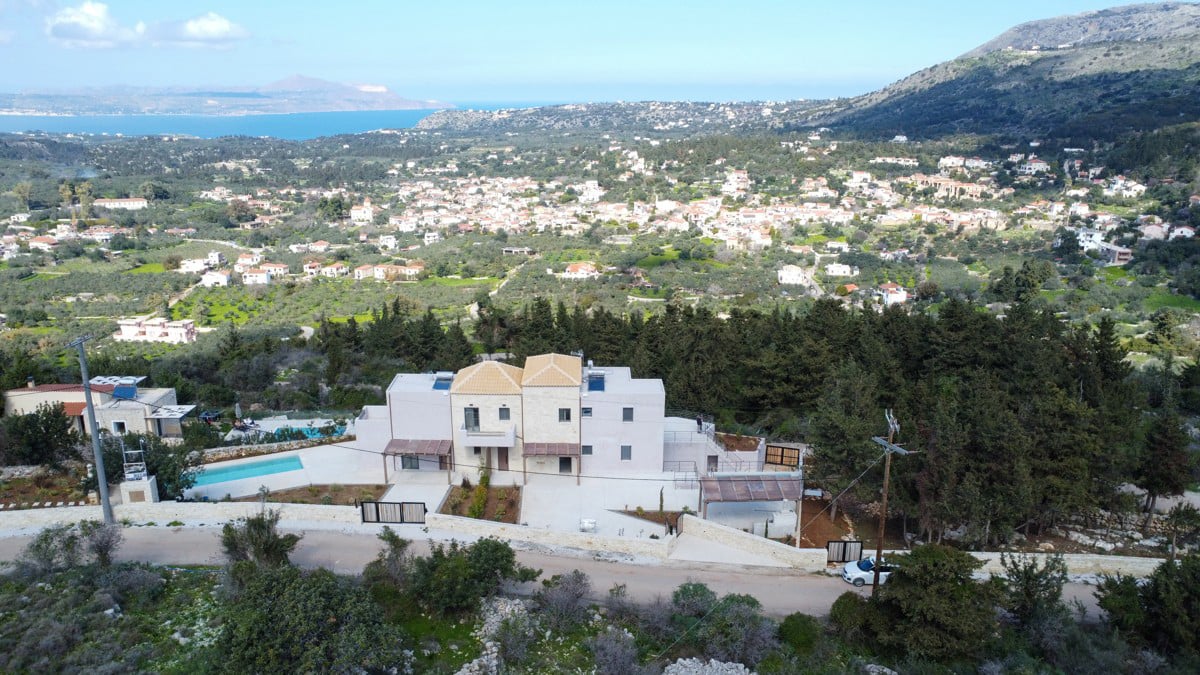 The complex is located in a particularly privileged spot, on the top of a hill, with unobstructed views in all directions, just 900 meters from the picturesque and historical centre of Gavalahori Apokoronas.A traditional settlement of incomparable beauty, inextricably intertwined with history, culture and the hospitality of Crete. Surrounded by traditional olive groves and dense vegetation, the complex consists of 2 independent houses with special architectural design, modern construction, in fu...