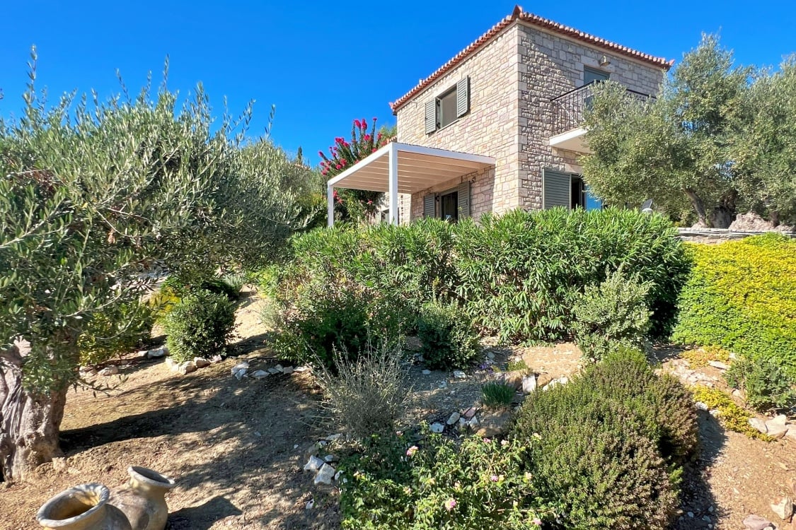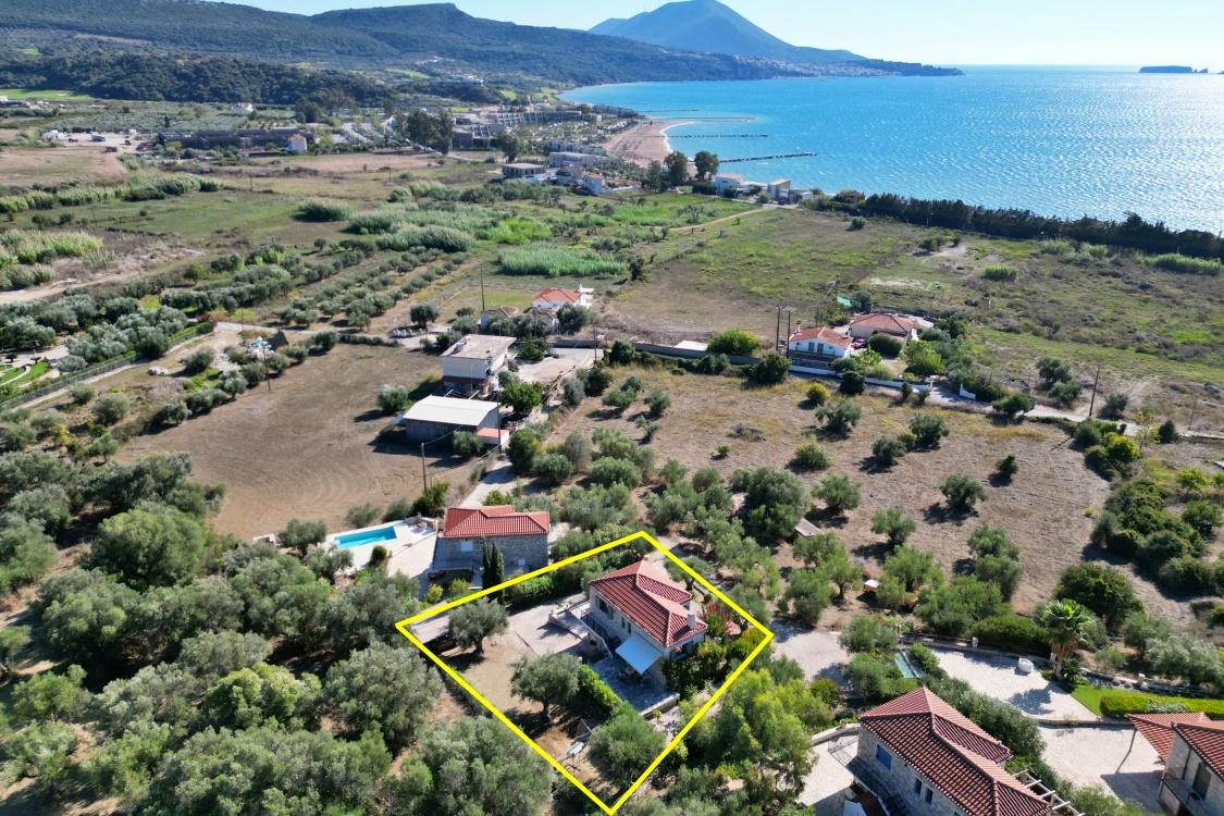 In the serene landscape of Gialova, just 500 meters from the sandy beach and local shops, this delightful stone villa sits amid olive trees in a peaceful enclave of four similar residences. Blending traditional architectural charm with modern comfort, it offers an exceptional setting for those seeking a Mediterranean lifestyle. From its elevated position, the property enjoys open views of the sea, Navarino Bay, the island of Sfacteria, and the sunset hues.Set on a 678 sqm plot, the villa was con...