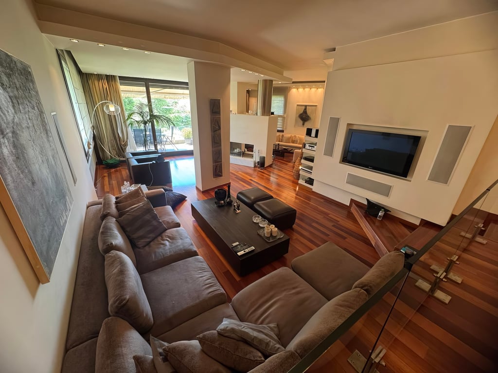 A versatile three-storey villa in the heart of Panorama offering nice views and all modern amenities. Located in the village of Panorama, the most exclusive suburb of Greece's second largest city, Thessaloniki, this 390 sqm villa is set on a verdant plot, offering both privacy and convenience. The villa unfolds over three floors. The ground floor functions as an independent apartment with its own entrance, featuring a living/dining room with a fireplace, a kitchen, one bedroom, and one bathroom....