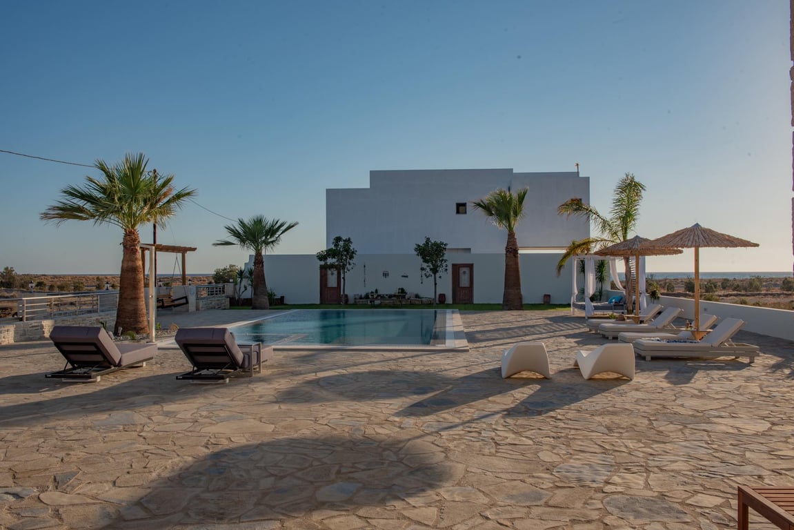 This beachfront villa near Kalamaki in Southern Crete offers luxurious accommodation where the waves break. The 150 sqm villa is developed on a 1000 sqm plot just 100 metres from the beach and expands over two levels. The ground floor comprises an open-plan living/dining room and kitchen, a master bedroom with en-suite bathroom, one guest WC and a 4.65 sqm storage facility. An interior staircase leads to the first floor, which comprises of two bedrooms and a bathroom, as well as a spacious 22 sq...