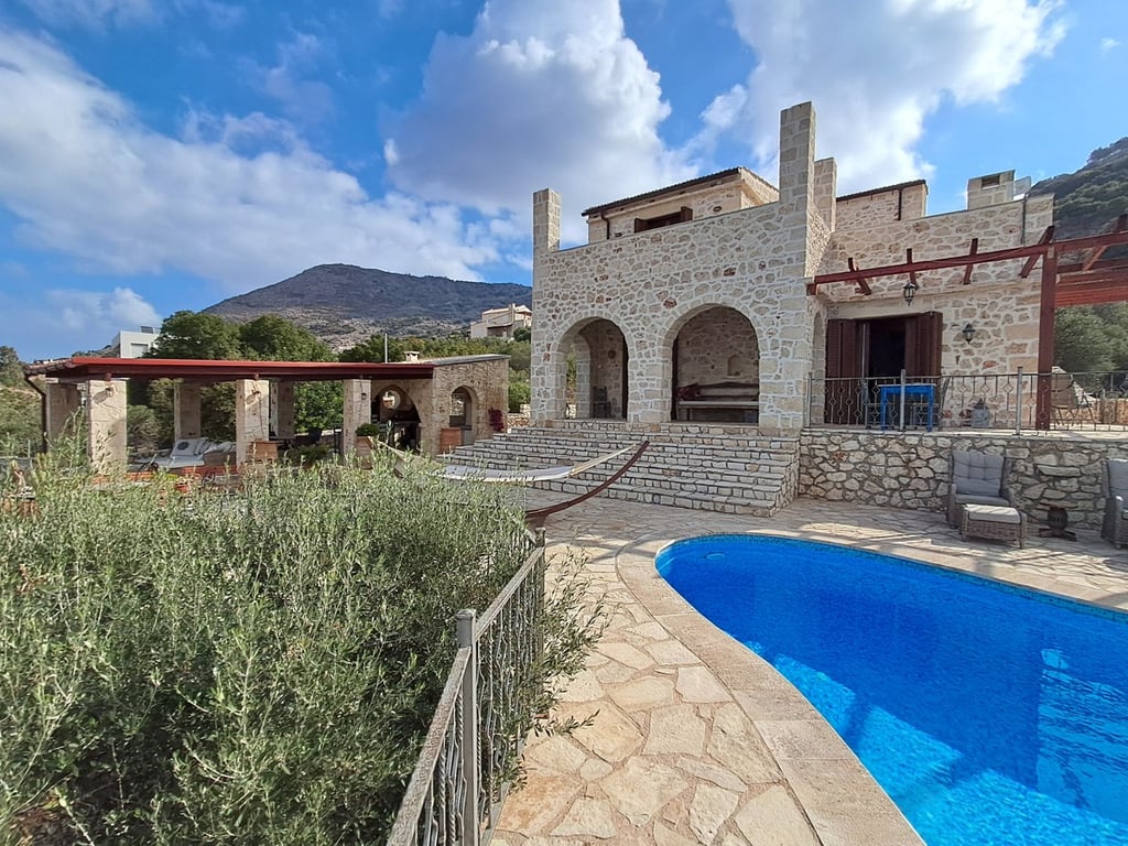 An amazing stone villa, set on a plot of 9,215.82 sqm, offering a perfect blend of luxury and comfort. Built in 2005, this two-story home boasts a spacious living area of 179.5 sqm and is designed to provide an exceptional living experience.As you enter, you will appreciate the stone designed modernised with conveniences, including underfloor heating throughout the ground and first floors, ensuring year-round comfort. The villa features a reliable gas heating system with a 300-liter tank, provid...