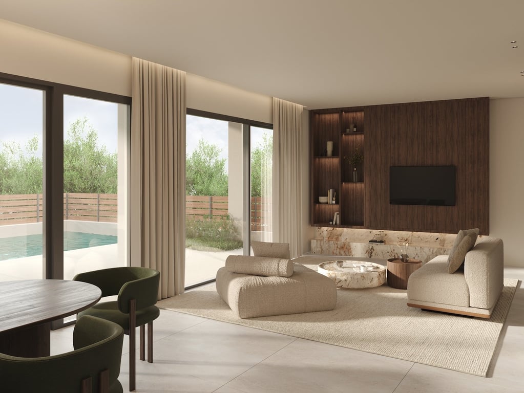 Just a stone's throw away from the sandy beach of Kantia, this exclusive development features two 101 sqm properties offering all modern amenities.The houses are developed on a 300 sqm plot, and each will unfold over two floors, connected with an interior staircase. The 52 sqm ground floor will feature an open-plan living/dining room and kitchen, as well as one WC, while floor-to-ceiling balcony doors will open up to the paved outdoor area of the house. The 48 sqm first floor will feature two am...