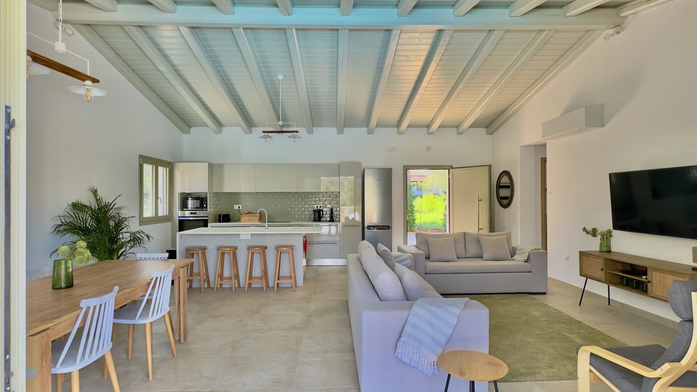This villa holds its spot in one of the most premium areas in Corfu— in walking distance from the moon-shaped beach of Avlaki, a 5-minute drive from the lively seaside town of Kassiopi, and less than a 10-minute drive to the marina village of San Stefano. Set on a 1,478 sqm plot, the single-level property features three bedrooms, three bathrooms, and a private pool. The interiors are modern and functional, with an open-plan kitchen, dining, and living area that opens onto a spacious terrace. Ea...