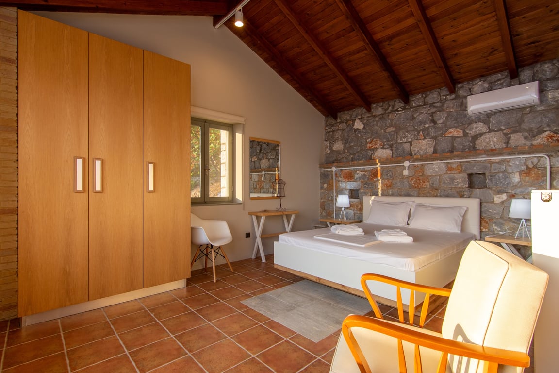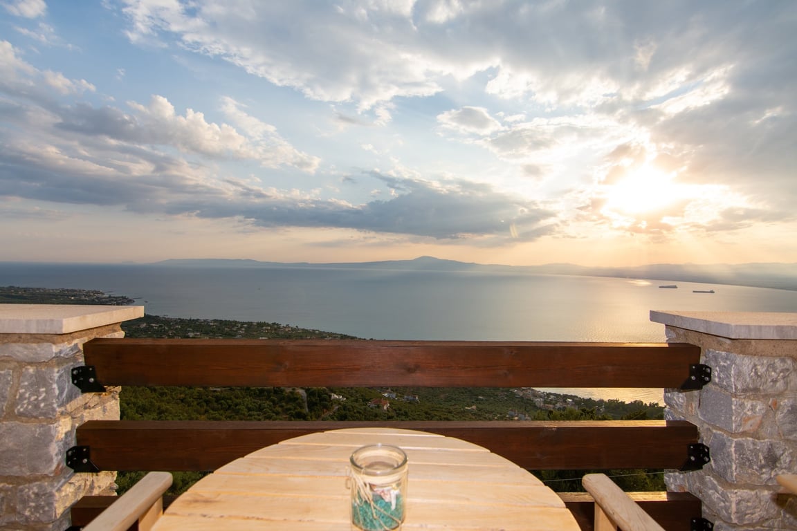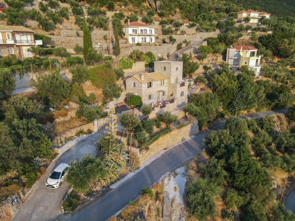 At an altitude of 268 metres above sea level in the sought-after area of Kato Verga, this elegant stone-built villa enjoys open views across the Messinian Gulf and a serene hillside setting just minutes from Kalamata. The residence extends over 205 sqm across three levels and sits on a generous 2,226 sqm plot, offering privacy, mature landscaping, and ample outdoor living space. On the ground floor, a welcoming living room with fireplace creates a warm atmosphere, flowing naturally into a spa...