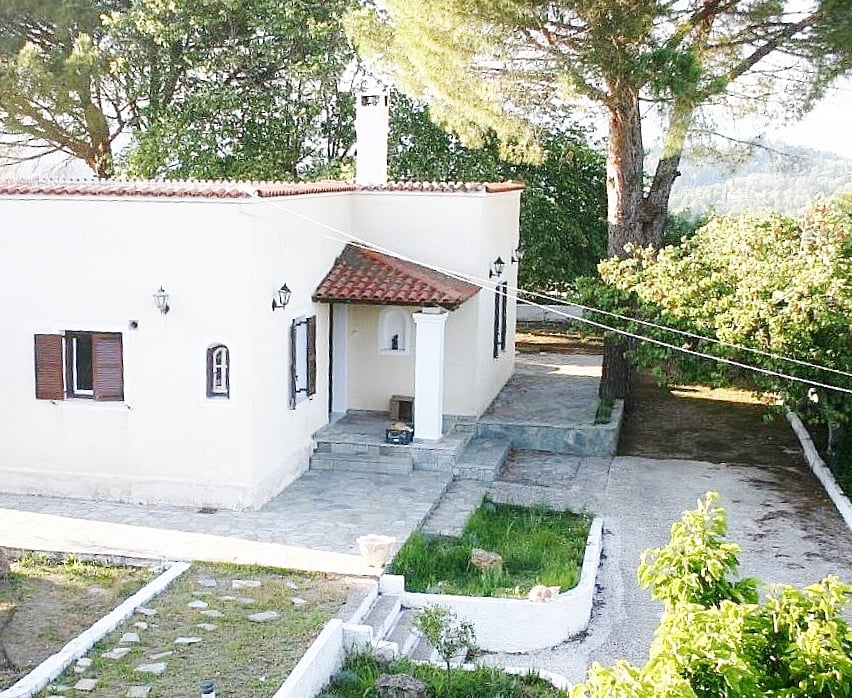 Located just outside Corfu Town, in the village of Kompitsi, this 213m2 villa offers privacy, space, and comfort within a lush 2144m2 plot. Built on a hillside beneath tall pine trees, the property is arranged over two levels and surrounded by wide verandas, stone-paved terraces, and a large garden filled with fruit trees.The main residence spans 172m2 and includes three generous bedrooms, two living rooms with a fireplace, a separate dining area, a fully equipped kitchen, a large bathroom with ...
