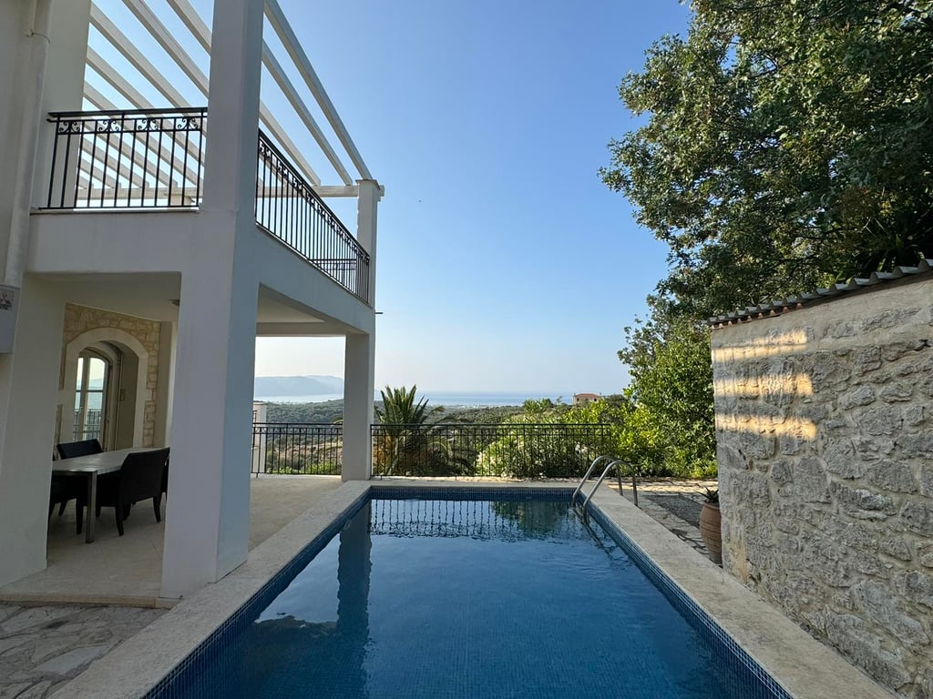 Discover this remarkable three-storey villa, offering 286 sqm of elegant living space on a beautifully terraced plot of 5,573 sqm. Nestled in the tranquil Cretan countryside near the charming village of Kournas, this property boasts breathtaking panoramic views of both the Cretan Sea and surrounding mountains—perfect for a permanent residence, luxurious holiday retreat, or a lucrative rental investment.Main ResidenceGround Floor (97 sqm):This level features a spacious open-plan living, dining, a...