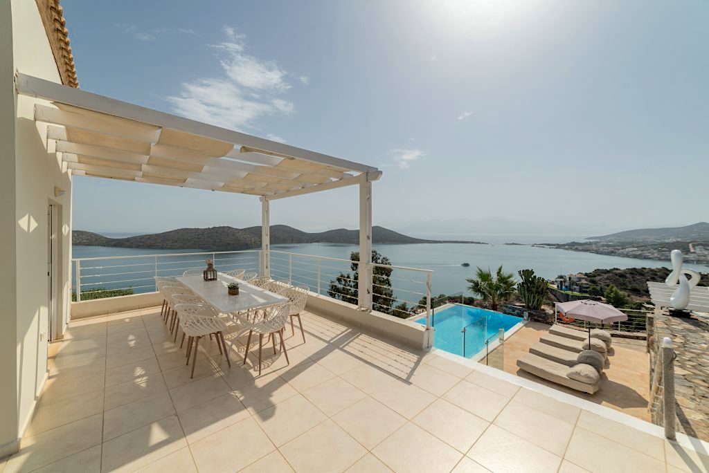Boasting panoramic views of the bay and the enchanting area of Elounda, the Elounda Lagoon Villa is an impressive private estate standing at the top of a hill on the northeast coast of Crete. Hidden from sight, this exquisite property enjoys unobstructed views of the azure Greek sky and the Aegean Sea. Upon entering the villa from the first floor, you are welcomed by the main living room, a fully equipped kitchen, and a dining area for six. A spacious veranda adjacent to the kitchen provides a p...