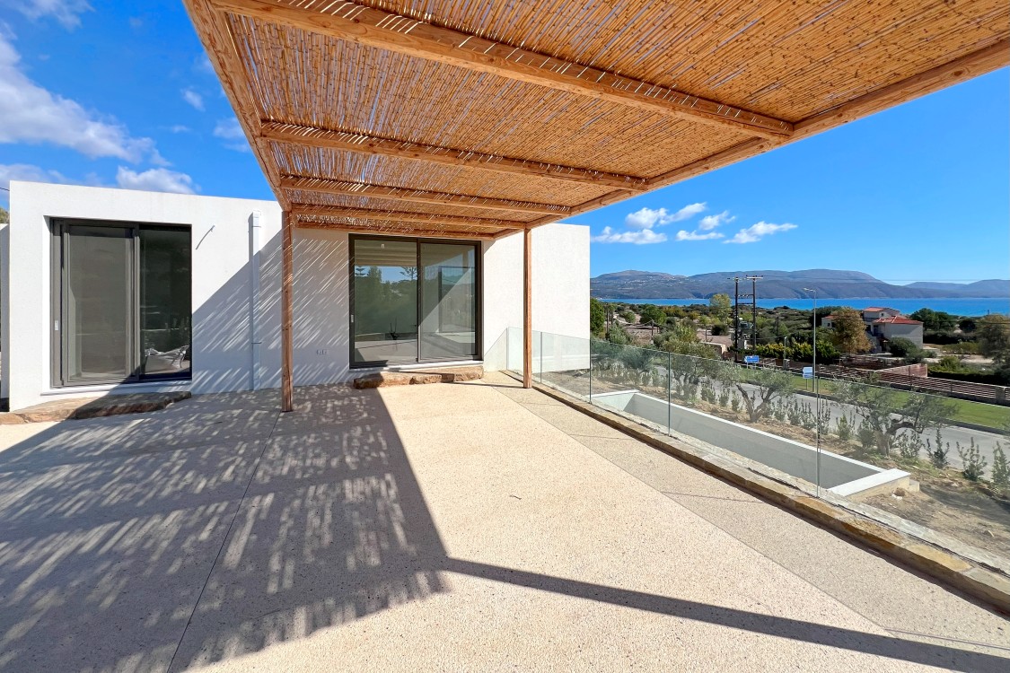 In the vicinity of Finikounda village and situated a mere 350 metres (walking distance) from a sandy beach, this villa combines luxury, comfort and functionality. Nestled on an extensive plot of 1,018 sqm, the villa is being built across two levels, with a total living area of 127 sqm. The construction has been completed in May 2024, including the swimming pool (3.80m x 6.70m). A home big enough to accommodate friends and family, with a total of 3 bedrooms and 2 bathrooms. Orientated to the Sout...