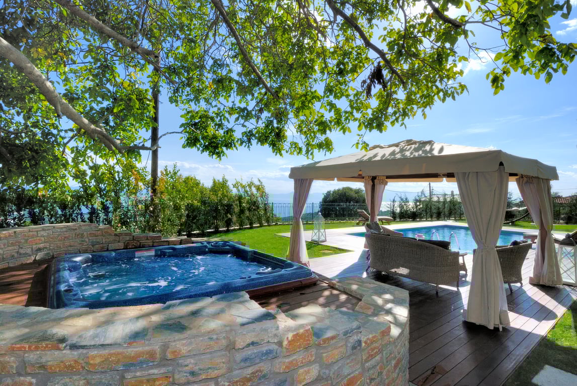Enjoying a vantage point above the sparkling waters of the Pagasetic Gulf, this villa commands one of the most privileged positions in Pelion, offering an unrivalled panorama where sea and mountains meet. Within walking distance (400 m.) to the centre of Milies and its village square, the Cherry Blossom Villa occupies a private world of its own: serene, secluded, and yet moments away from sandy beaches, enchanting hiking trails, and the renowned Pelion Ski Centre of the region. Set on an expansi...