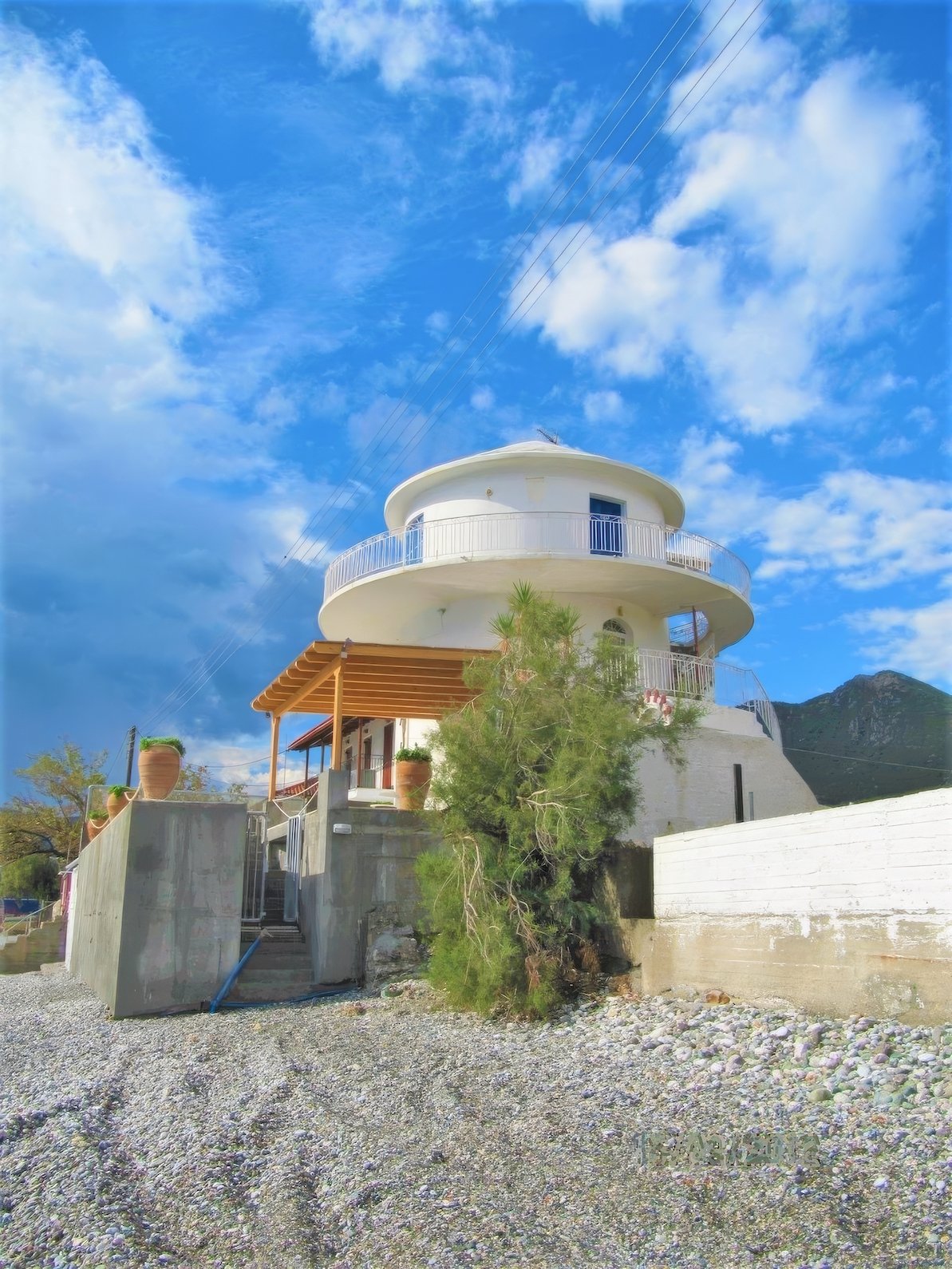 This exceptional Stone mill villa of 200 sqm is a residence built by the sea in a fenced plot of 350 sqm. Located in a quiet and safe area, this old stone mill has been converted into a comfortable residence with direct access to the beach in the Leonidio waterfront settlement. On the ground floor, the Stone Mill Villa has a kitchen, a living room, and a dining room, as well as an exit to a landscaped terrace and the beach. The other two levels (1st and 2nd floor) each have one bedroom and on...