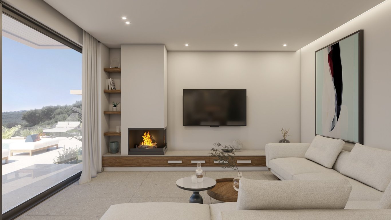 A true landmark of high aesthetic, privacy and breathtaking vistas to the endless blue, nestled among Crete's endless olive groves. As the site has unobstructed views to the sea, the intention is to create a residence which maximises the visual connection to the sea. Along the whole villa, towards the north, stretches the open-air landscaped area, divided into two levels. In front of the common areas is the covered outdoor seating area and the swimming pool; canopies offer protection from sun du...