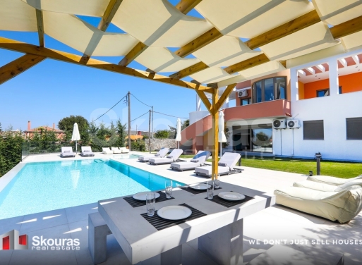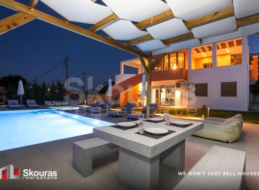 In one of the most privileged locations in northeastern Corfu, an iconic 497 sq.m. villa is for sale, combining absolute privacy with unparalleled views of the Ionian Sea. The property extends over a 1,073.59 sq.m. plot and is a unique example of contemporary architecture and functional luxury. The villa is situated on a hill in the settlement of Alykes - Potamou, with direct access to the island's top beaches, such as Kommeno, Kassiopi, Gouvia, Barbati, and Paleokastritsa. Its location ensures ...